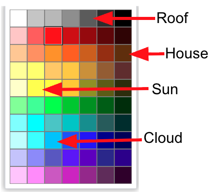 In the grid below, you can see a picture of a house with a sun and cloud. Using the turtle replicate the image using shapes. The colours you need from the colour picker can be seen in t